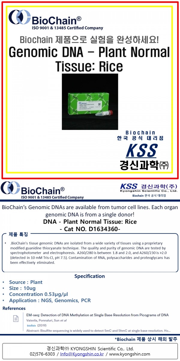 Genomic DNA - Plant Normal Tissue: Rice 페이지 정보 작성자 Kyongshin 작성일22-04-08 09:24 관련링크 https://www.biochain.com/genomic-dna-plant-normal-tissue-rice 9409회 연결 이전글 다음글 목록 본문 #경신과학 #KSS #Biochain #D1634360 #GenomicDNA #Rice #Plant #PCR #NGS #Genomics 이전글 다음글 목록