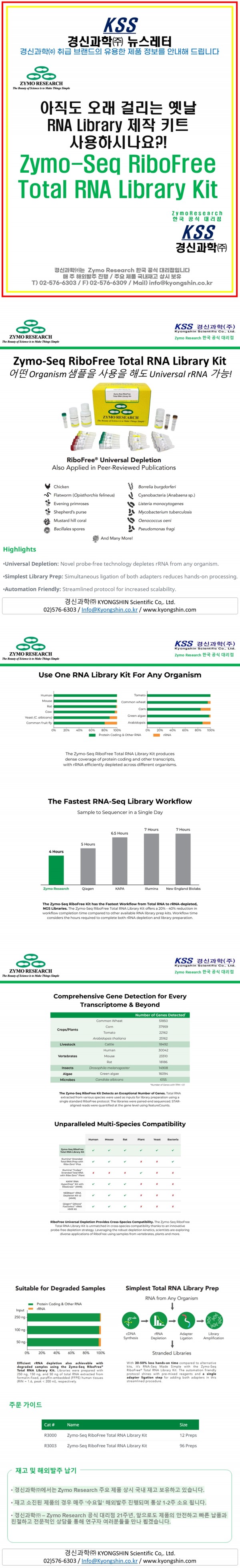 #경신과학 #KSS #Zymo #ZymoResearch #RNAseq #RiboFree #NGS #UniversalrRNADepletion #UltraFast
