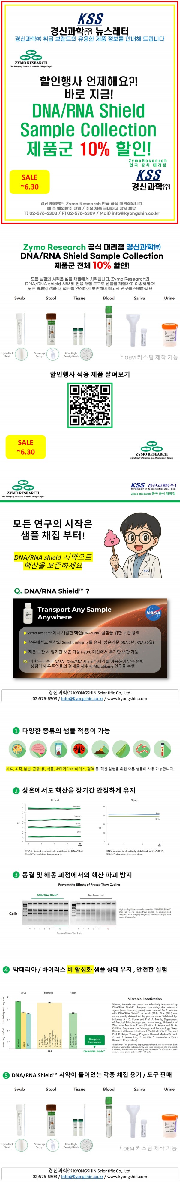 6월 말까지 Zymo Research DNA/ RNA shield 와 Sample Collection kit 할인행사를 진행하오니 많은 성원 부탁드립니다