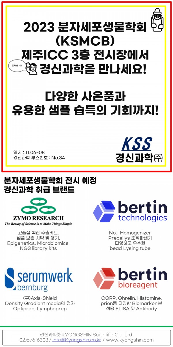 #경신과학 #KSS #bertin #ZymoResearch #serumwerk #KSMCB2023 #분자세포생물학회 #제주ICC #34번부스에저있어요