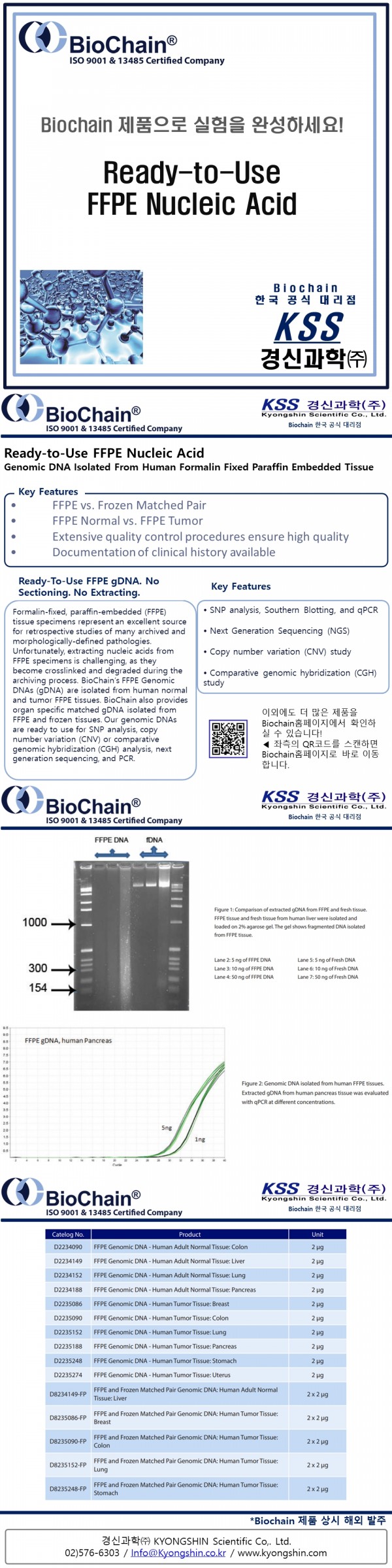 바로 사용할 수 있는 FFPE DNA 제품 시리즈를 소개합니다! 경신과학은 Biochain한국 공식 대리점이며 상시 발주 가능합니다