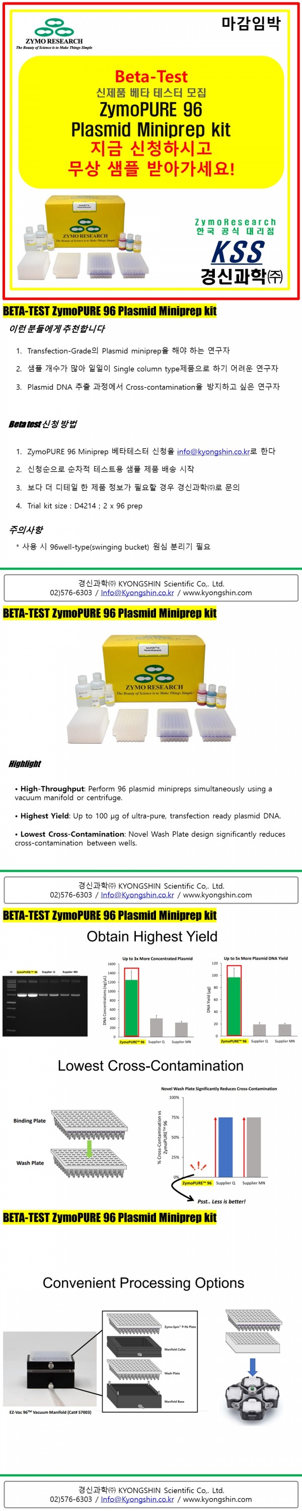 마감임박] ZymoPURE 96 Plasmid miniprep kit 무상 베타테스터 모집