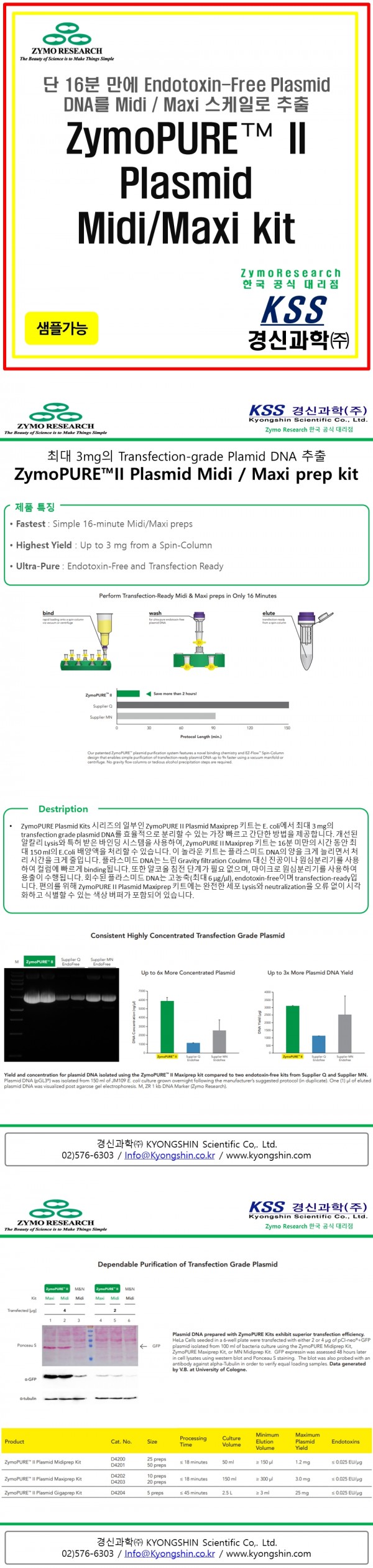 #경신과학 #KSS #ZYMO #ZymoResearch #ZymoPURE #Plasmid #MidiMaxi #EndotoxinFree #16min