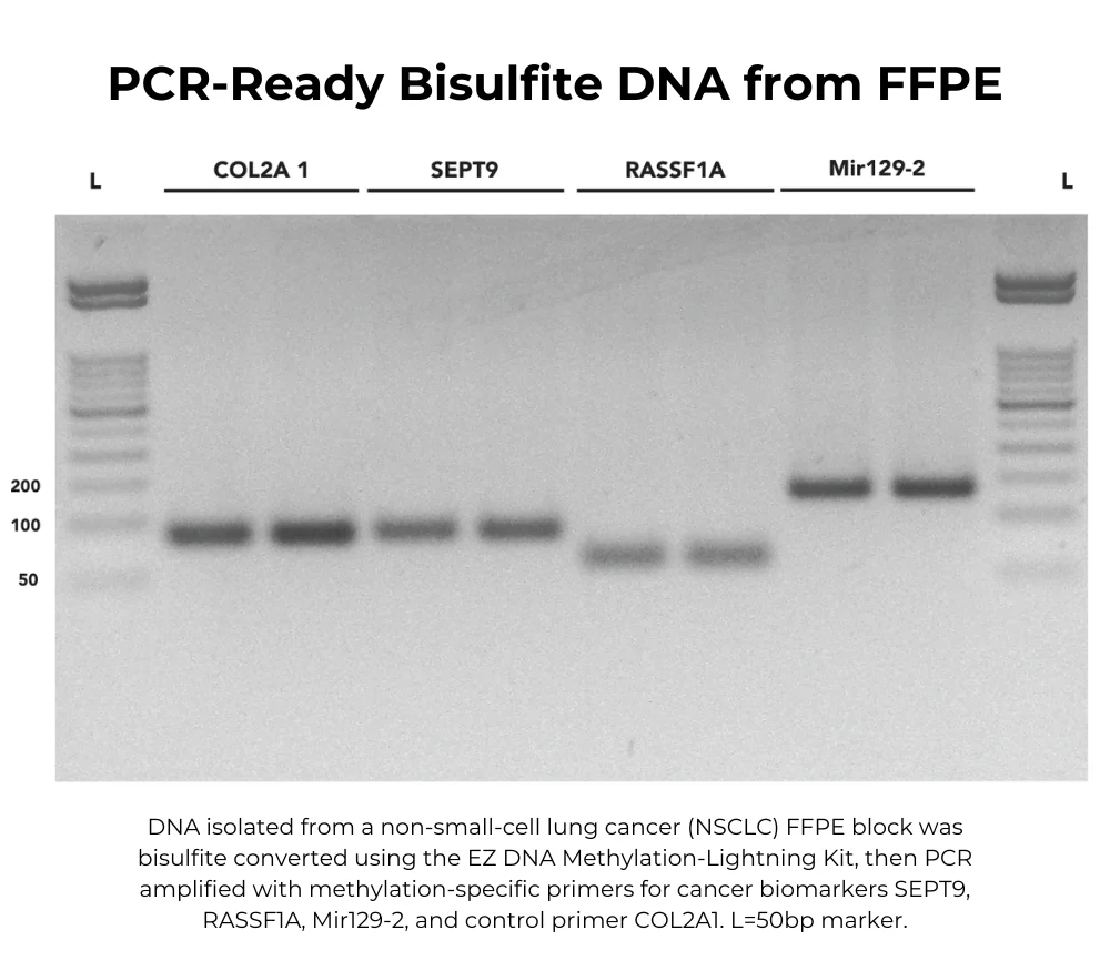 High-yield, converted DNA is ideal for PCR, Methylation Specific PCR (MSP), arrays, library preps, Next-Generation sequencing, etc.