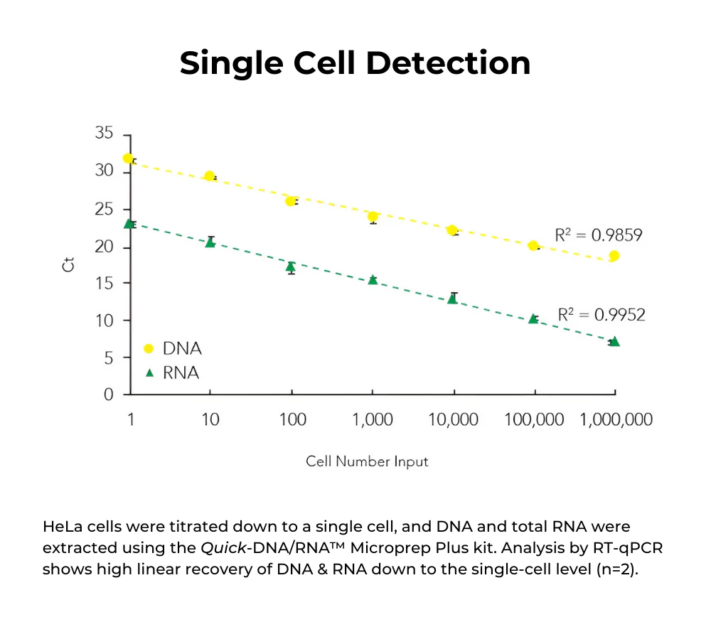 | Size Limits | Genomic DNA up to and above 40 kb. Mitochondrial and viral DNA (if present) will also be recovered. Total RNA including small/microRNAs ≥17 nt. |